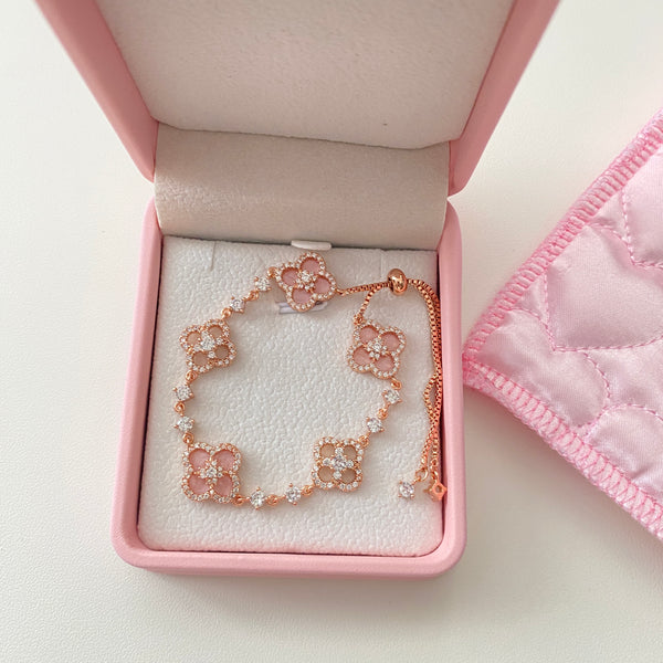 "Spring Blossom Promise" Pink Clover Mother-of-Pearl Jewelry Set | Necklace, Bracelet, Ring & Earrings, 925 Sterling Silver