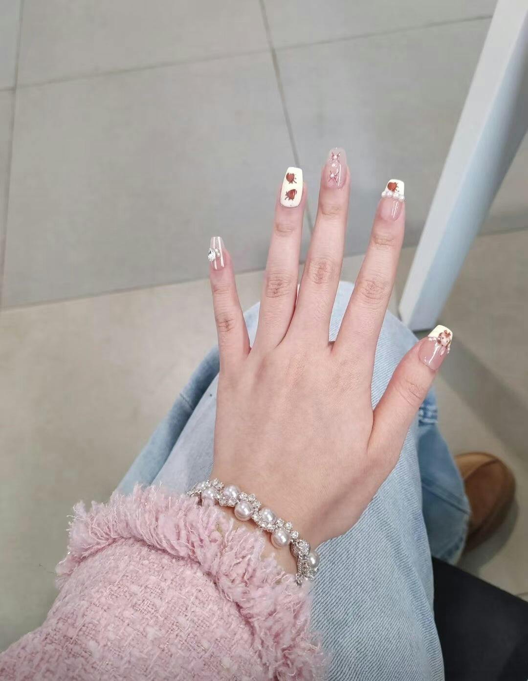 真珠がとても上品で、光に当たるとキラキラします。マグネットの留め具は簡単で使いやすいです。
