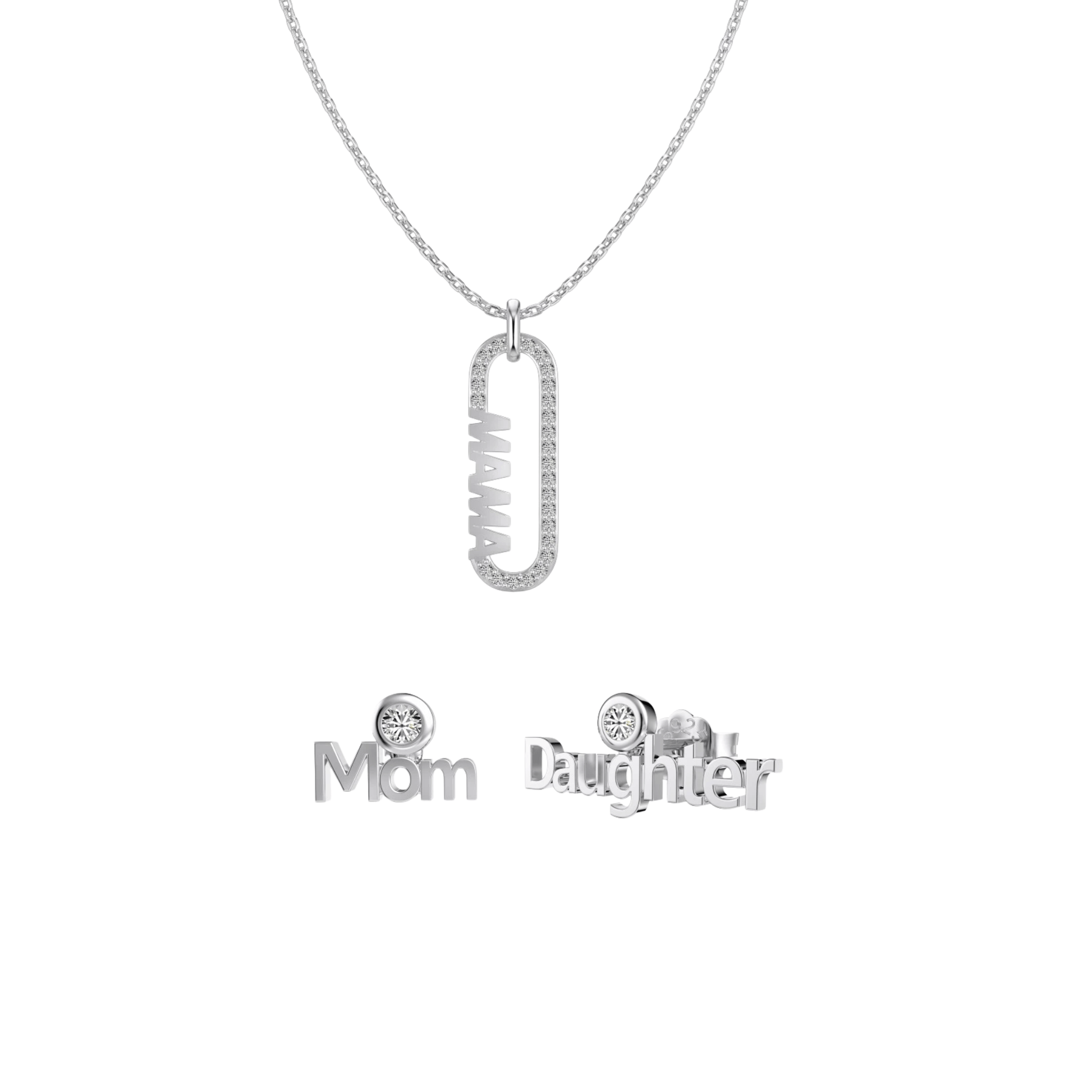 “Mama Link” S925 Sterling Silver Pavé Mom Jewelry Set (Necklace & Earrings)