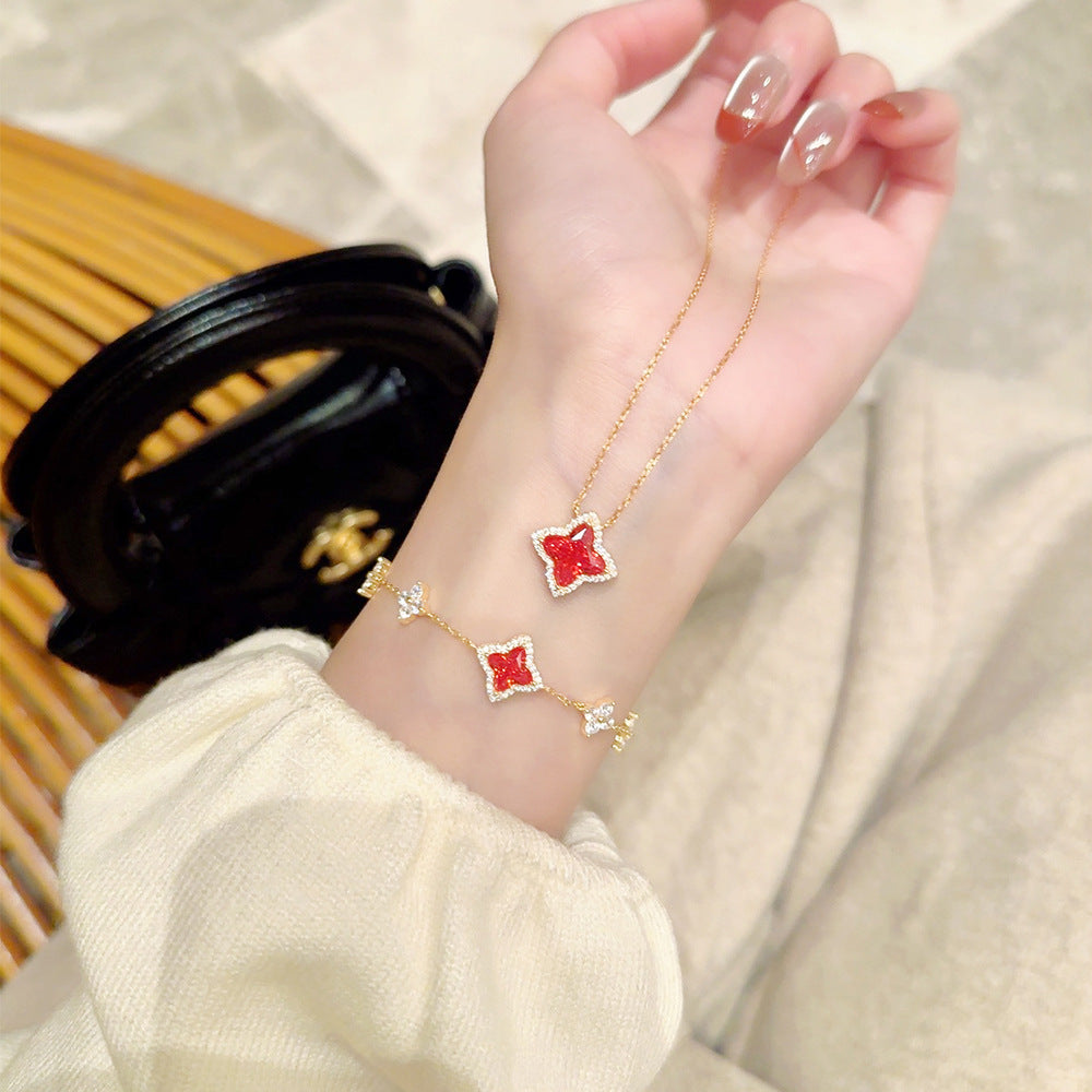 “Stellar Clover” Original Design 925 Sterling Silver Starburst Four-Leaf Clover Jewelry Set