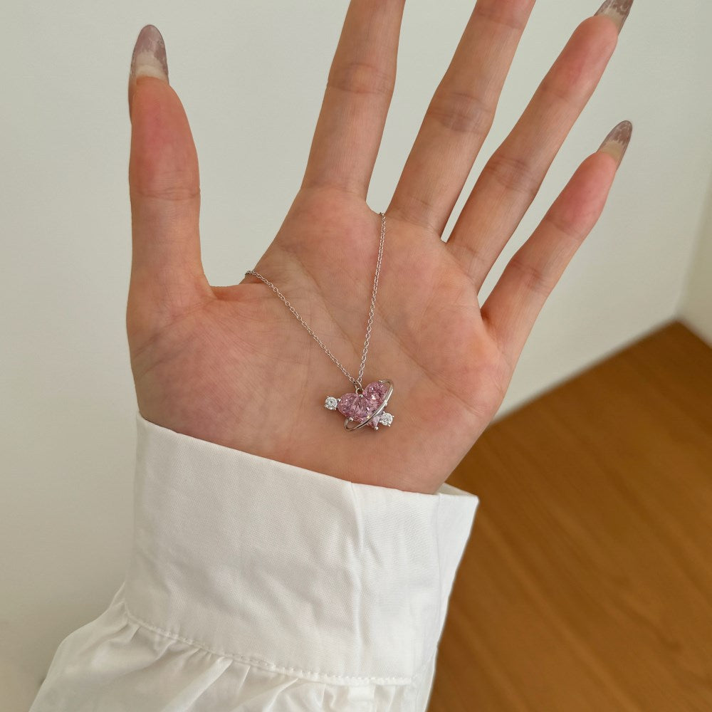 Step into a universe of romance with the Orbit of Love necklace. Crafted in 925 sterling silver, this exquisite piece features a radiant pink heart-shaped zircon, encircled by two sparkling white stones like satellites in orbit. The design symbolizes love as a guiding star, always surrounded by light and devotion....