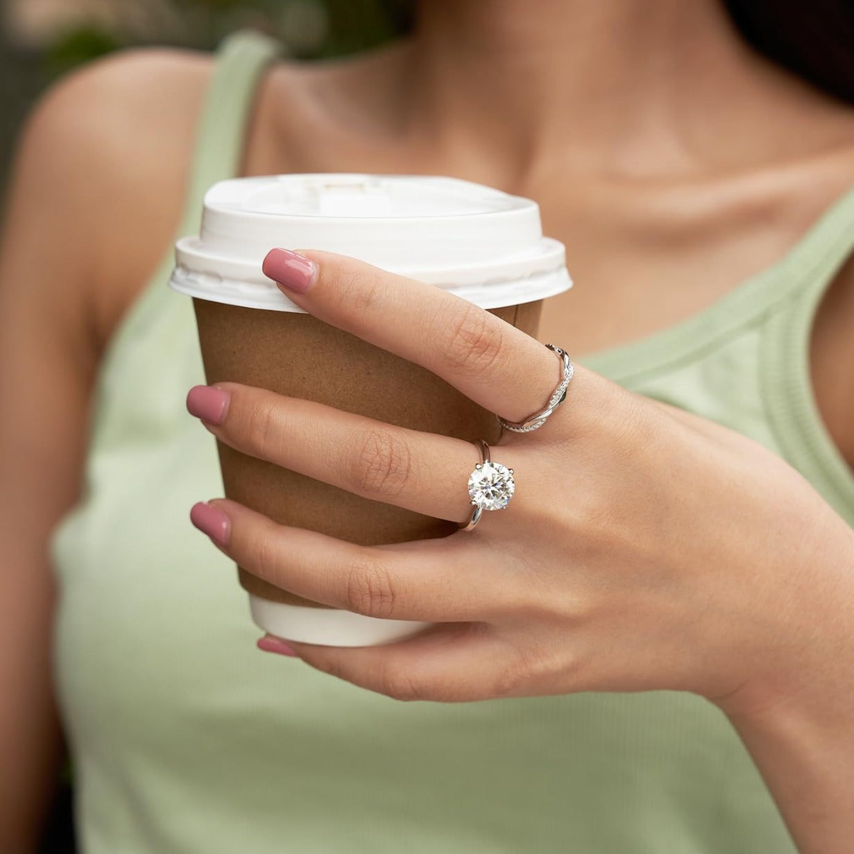 "Eternal Duo" 925 Sterling Silver 3-Carat Zircon Ring Set (Plated in 18K White Gold)