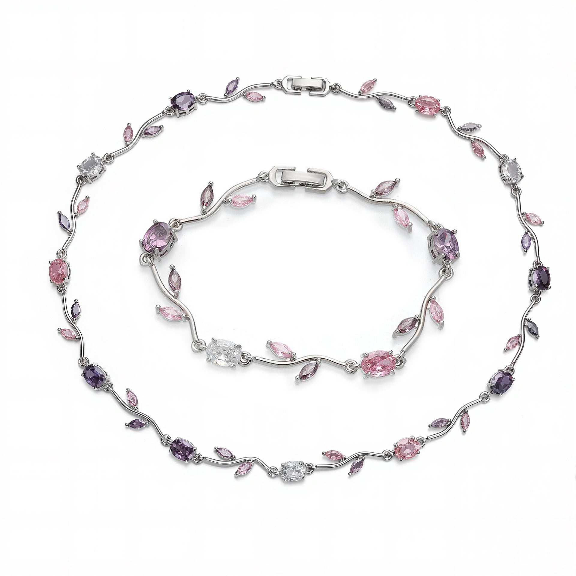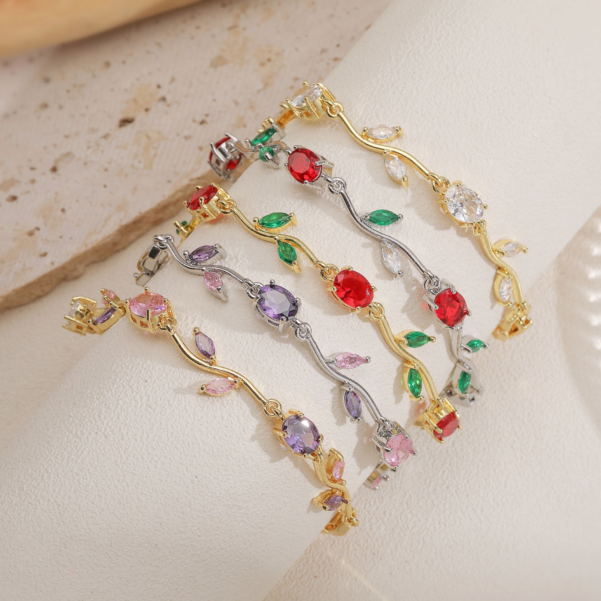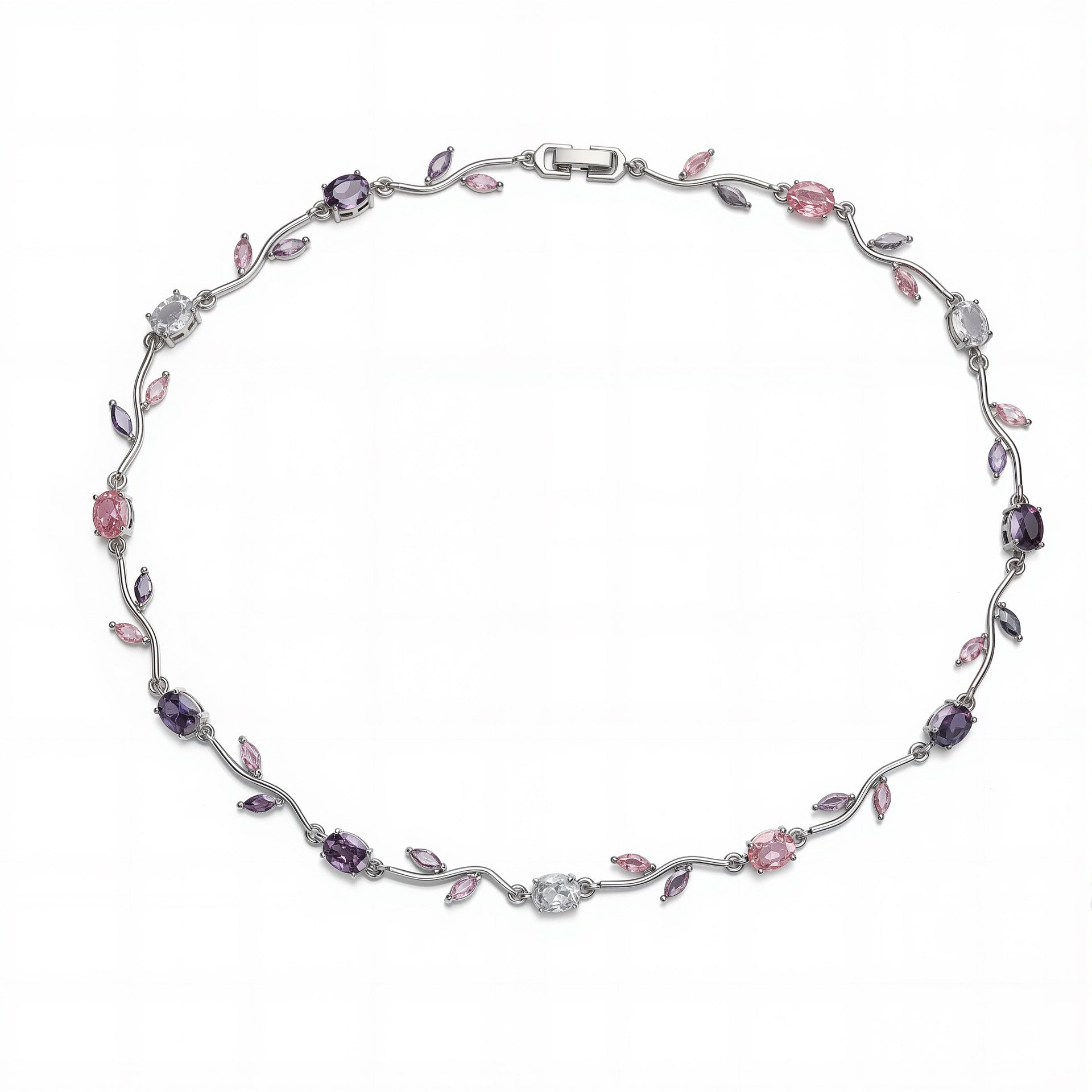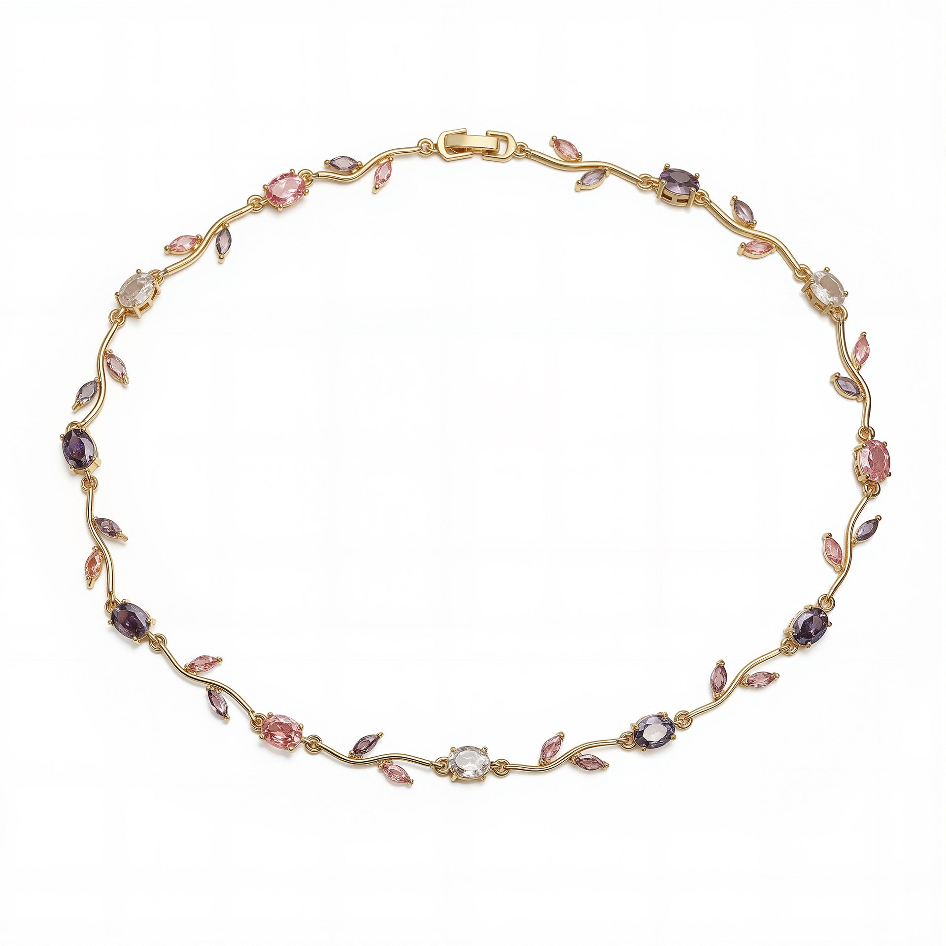 Inspired by blooming tulips swaying in a gentle breeze, Tulip Reverie captures fluid elegance through curved vine-like links and delicately set oval and marquise stones. The alternating colors create a soft floral rhythm, making this design both eye-catching and graceful. Whether worn alone for subtle sparkle or layered for a...