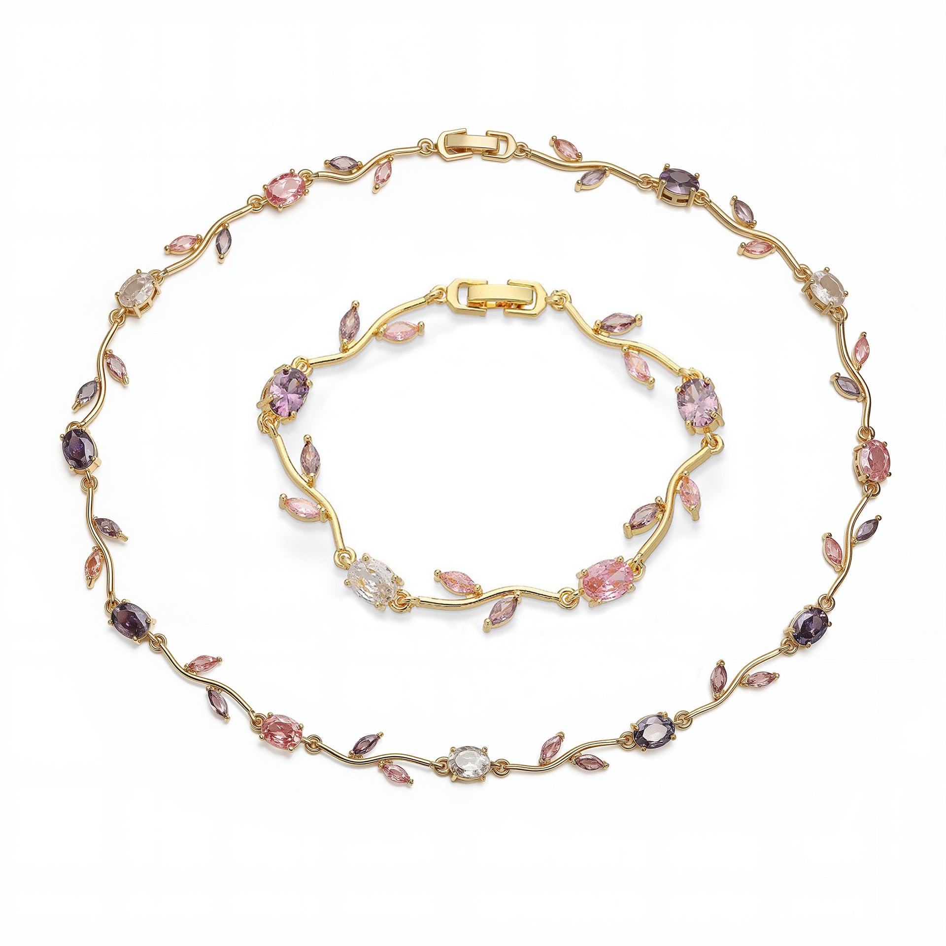 Tulip Reverie Gold-Plated Brass Multicolor Zircon Necklace / Bracelet